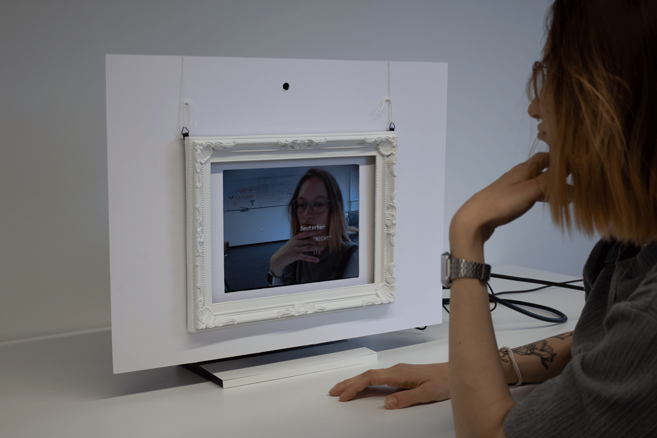 Devil’s Advocate puts words into an observer’s mouth which are taken live from posts on Twitter (now X), some of which contain hateful language. The installation visualizes social media algorithms not only predict but also shape user behavior. Additionally, it highlights their potential as breeding grounds for extremist views.